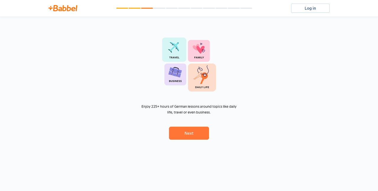 In the sign up flow, Babbel mixes data-generating questions with features that a user might miss if they jump straight into the sign up flow. - Subscription services were far less likely to mention modification.